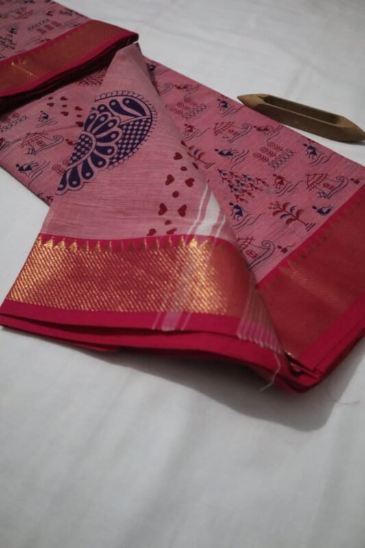Traditional Warli Print Pure Cotton Saree with Rich Border