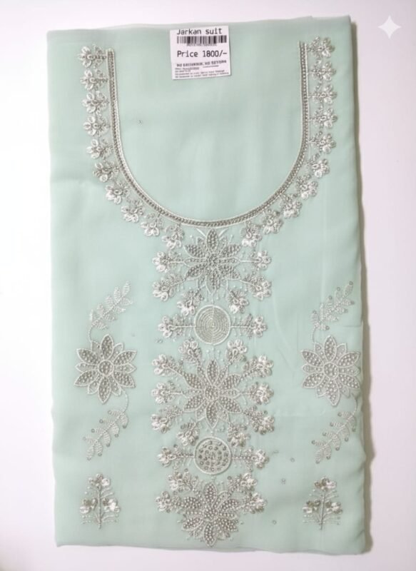 Women Light Green Jarkan Embroidered Salwar Kameez Set – Sequin Work Ethnic Suit with Dupatta (Unstitched)