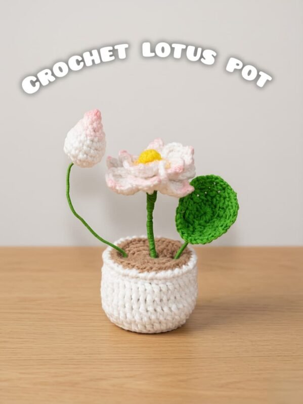 Handmade Crochet Lotus Flower Pot | Mini Table Decor | Aesthetic Home Decor Gift