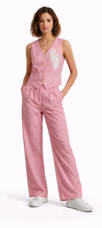 Women’s Pink Striped Co-ord Set | Sleeveless Vest & Pant Suit | Stylish Casual & Office Wear
