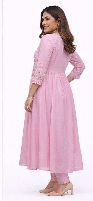 Women Pink Anarkali Kurta Set with Dupatta | Embroidered Ethnic Wear Party & Festive Dress