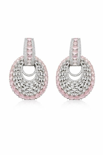 Premium Crystal Hoop Drop Earrings for Women | Designer Stone Party Earrings (Pink & Purple)