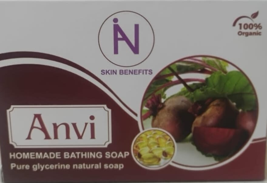 Experience the goodness of nature with Anvi Homemade Bathing Soap, specially crafted with powerful natural ingredients that help nourish and protect your skin. This pure glycerine soap is enriched with coconut oil, olive oil, beetroot extract, vitamin E, and turmeric to provide deep hydration and natural skin care.