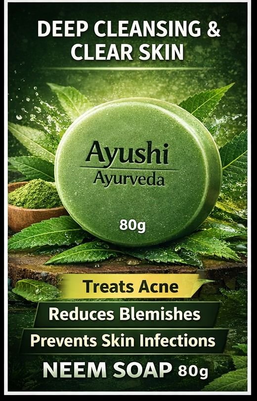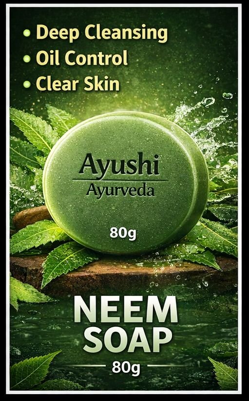 Ayushi Ayurveda Neem Soap is made with the natural goodness of neem, known for its antibacterial and skin-cleansing properties. It helps remove dirt, excess oil, and impurities from the skin while keeping it fresh and healthy. Regular use may help reduce pimples and maintain clear skin. Suitable for daily use and all skin types.