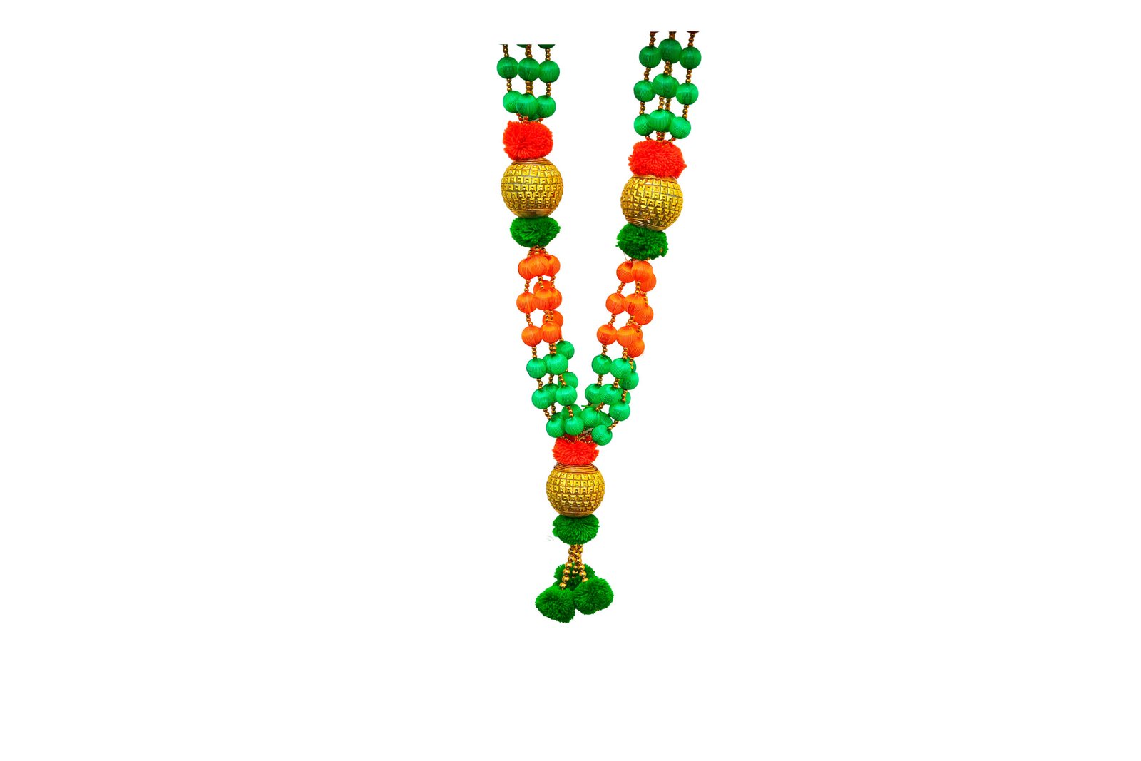 BJP Party Malai | Traditional 4 Line BJP Malai | 40 Inch Artificial Garland | Orange Green Gold Beads | VIP Welcome Decoration
