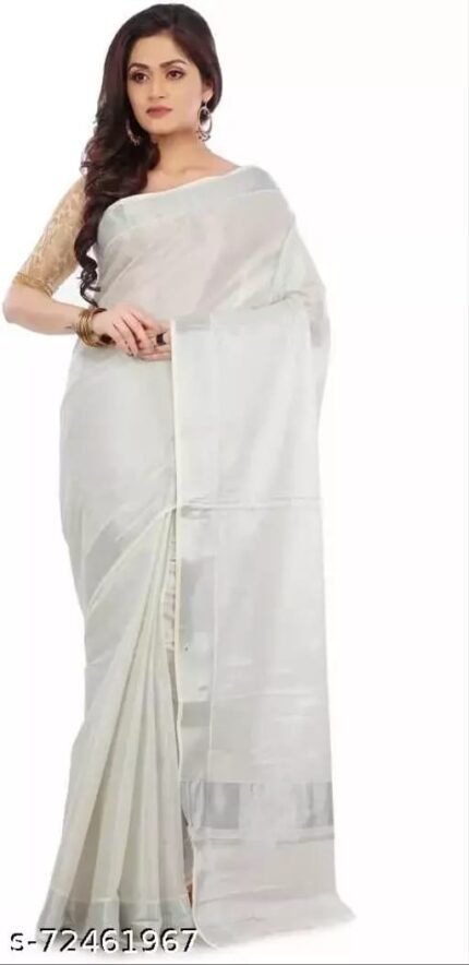 Silver Tissue Cotton Blend Saree for Women | Elegant Saree on ZoomMart