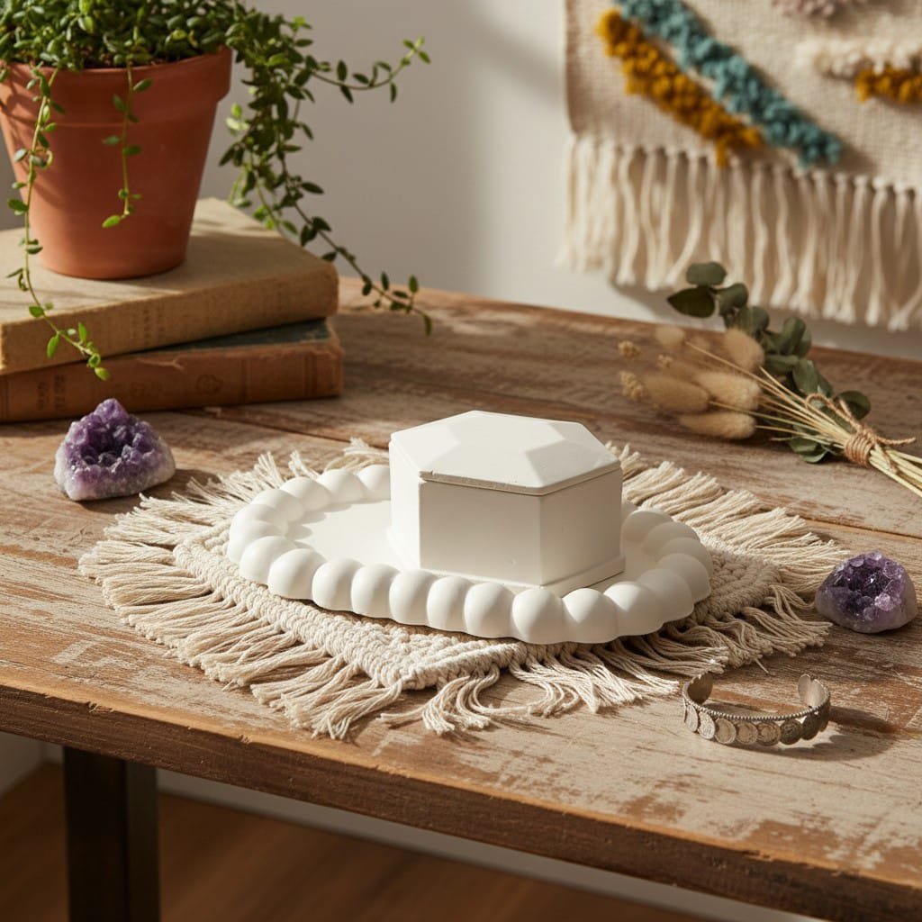 Upgrade your decor and organization with this elegant Combo 3 set, featuring a trendy bubble tray and a modern hexagon jewellery box. Designed for both style and functionality, this combo is perfect for storing small accessories while adding a minimal aesthetic to your space.