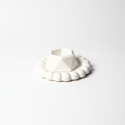 Round Bubble Tray with Hexagon Candle Holder | Decorative Gypsum Tray Set (Combo 30)