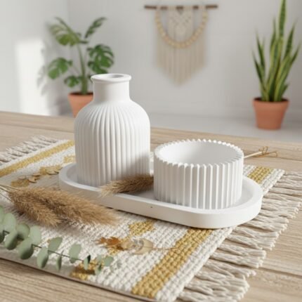 Bubble Tray + Zigzag Candle Holder + Decorative Vase | Modern Home Decor Set Combo 10