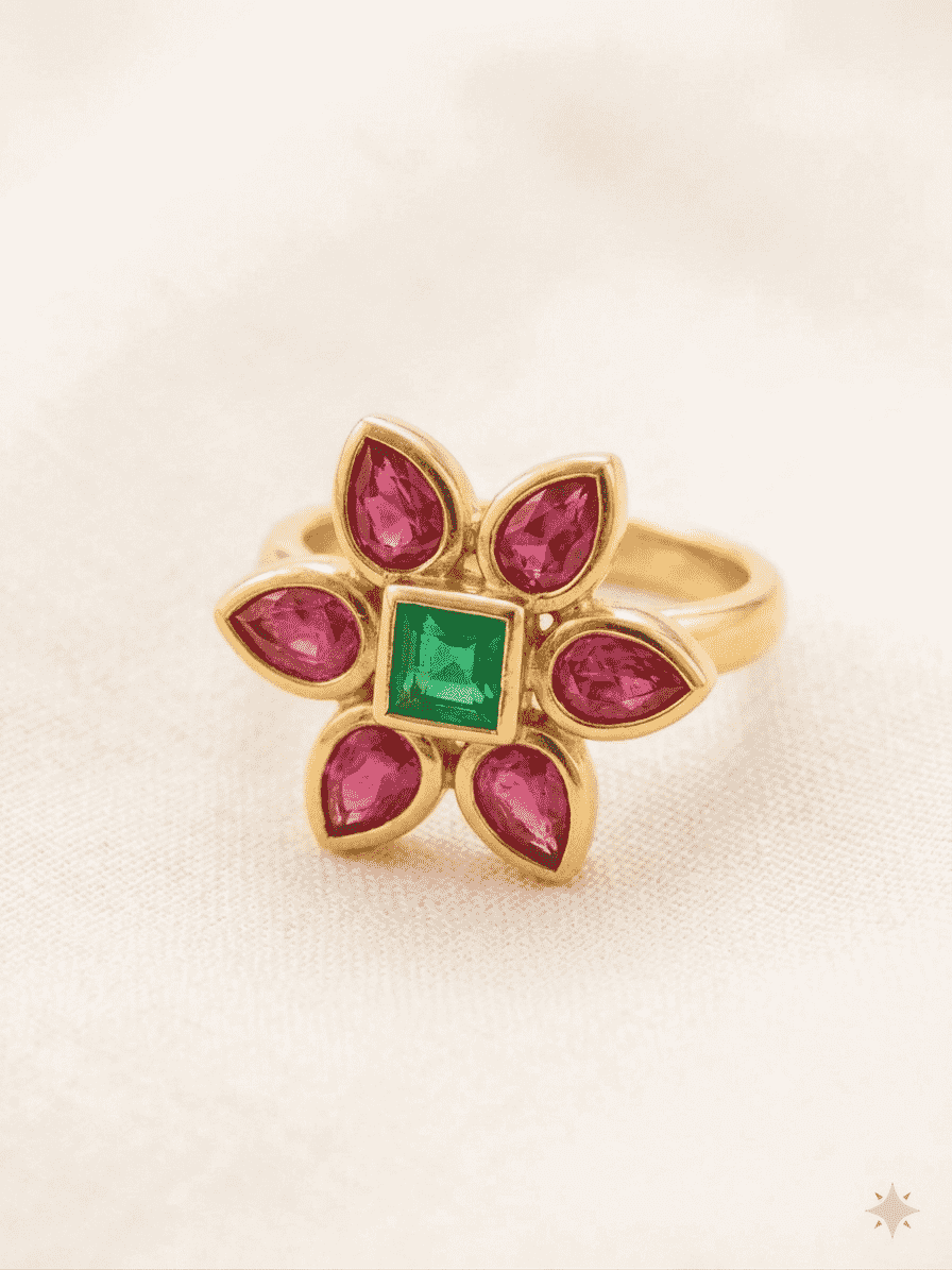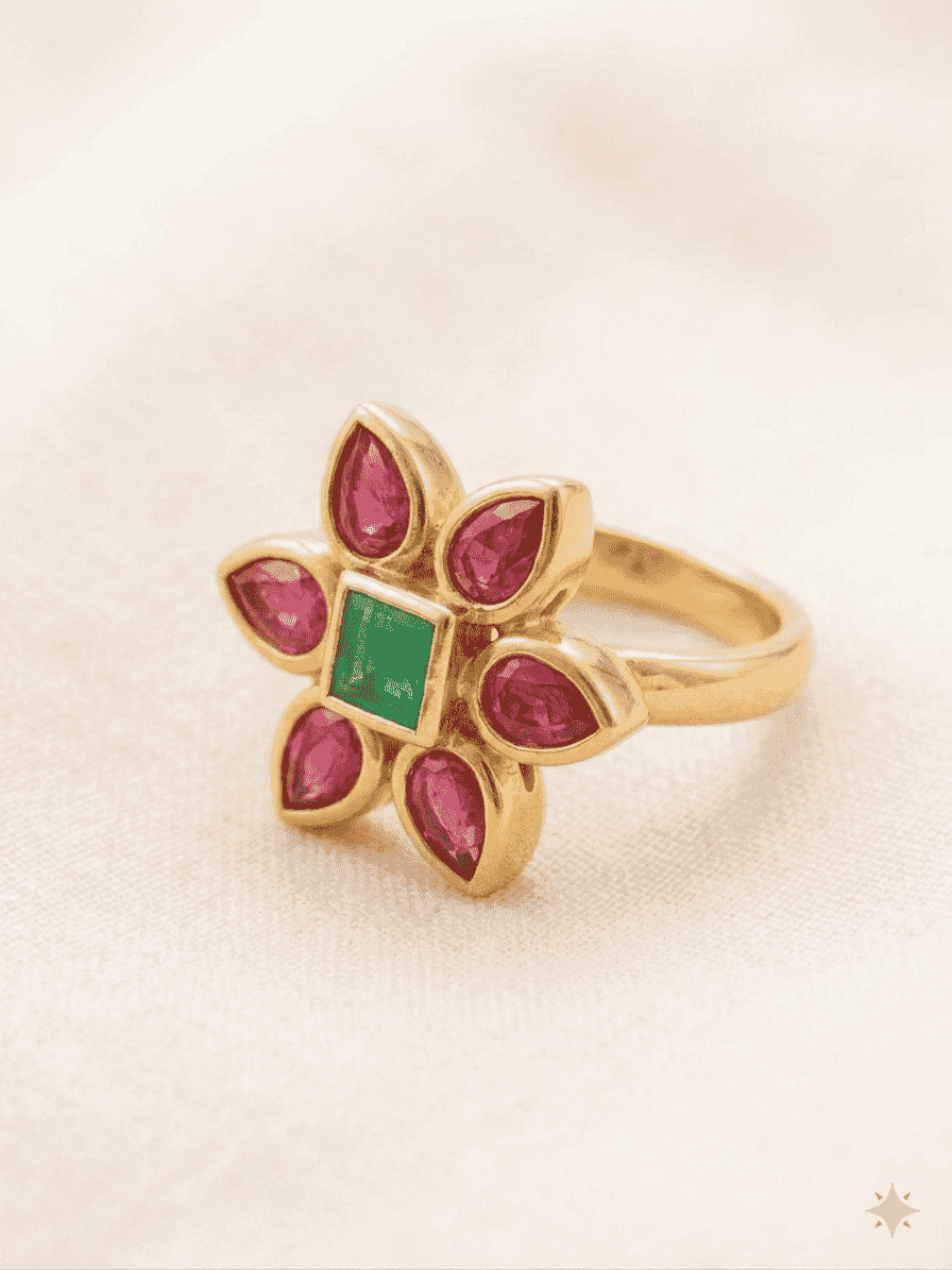 Color: Gold with Pink and Middle green Stones (as per image)