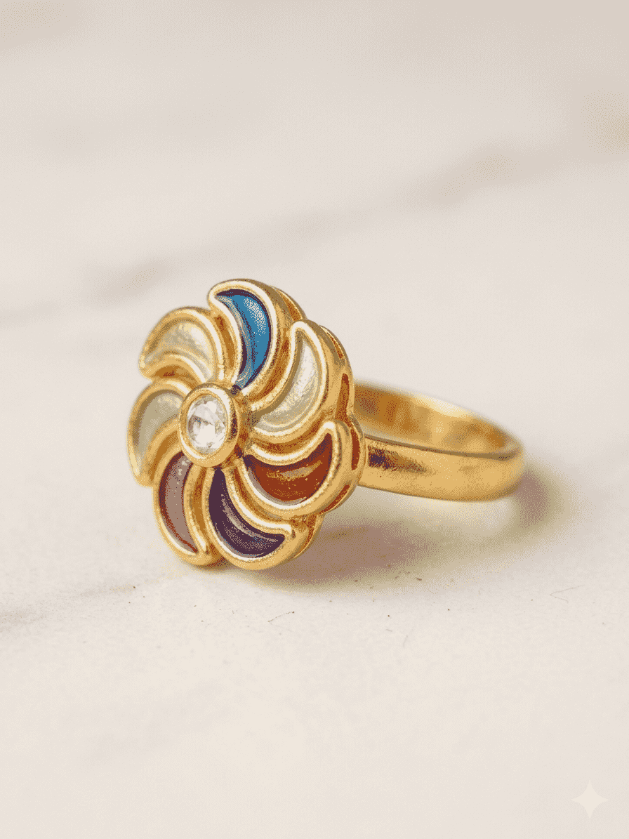 Multicolored floral finger ring for women | Flower Kundan Ring for Women | Traditional Adjustable Ethnic Finger Ring