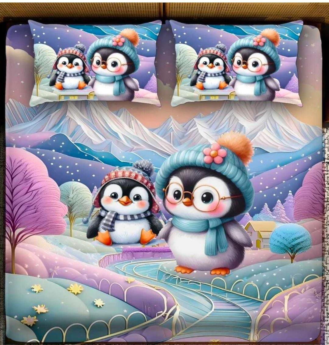 Cute Penguin Winter 7D Digital Printed Bedsheet