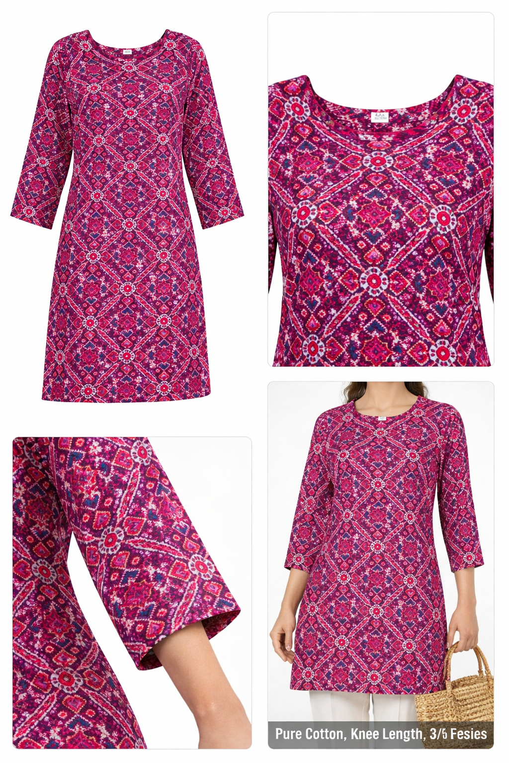 Cotton Patola Print Knee Length Top – 3/4 Sleeves Ethnic Wear for Women India Pure 60×60