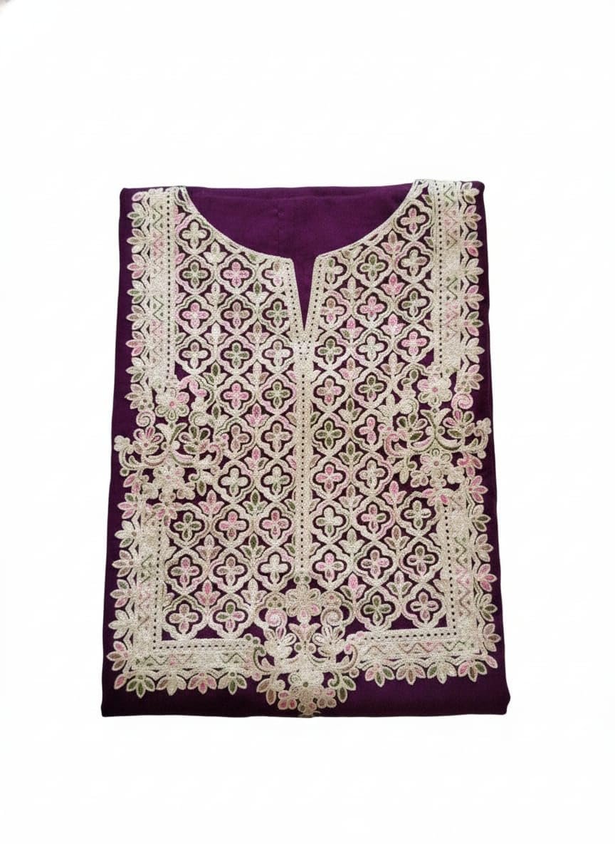 Add grace and elegance to your traditional collection with this Women’s Purple Embroidered Kashmiri Salwar Suit Set. Designed with intricate Kashmiri style embroidery and gold embellishments, this outfit reflects timeless Indian ethnic craftsmanship.