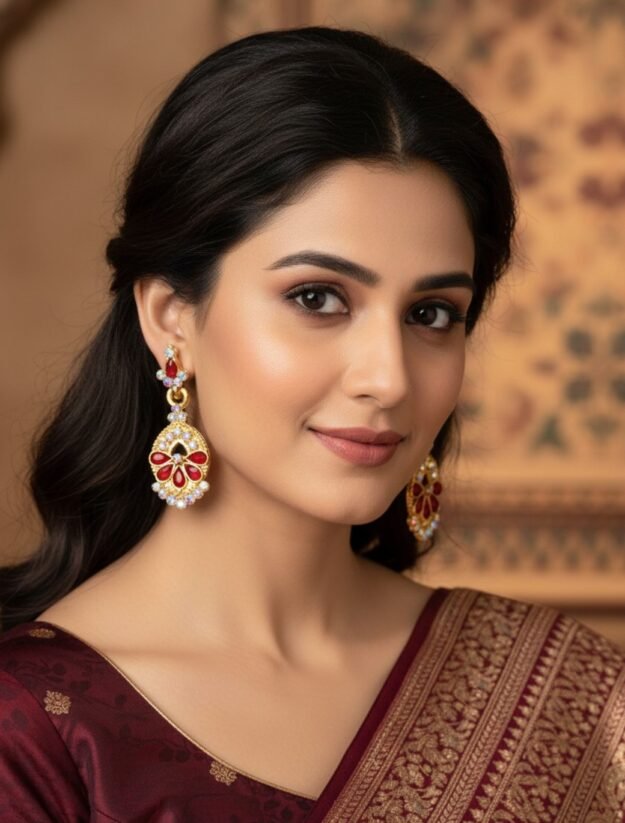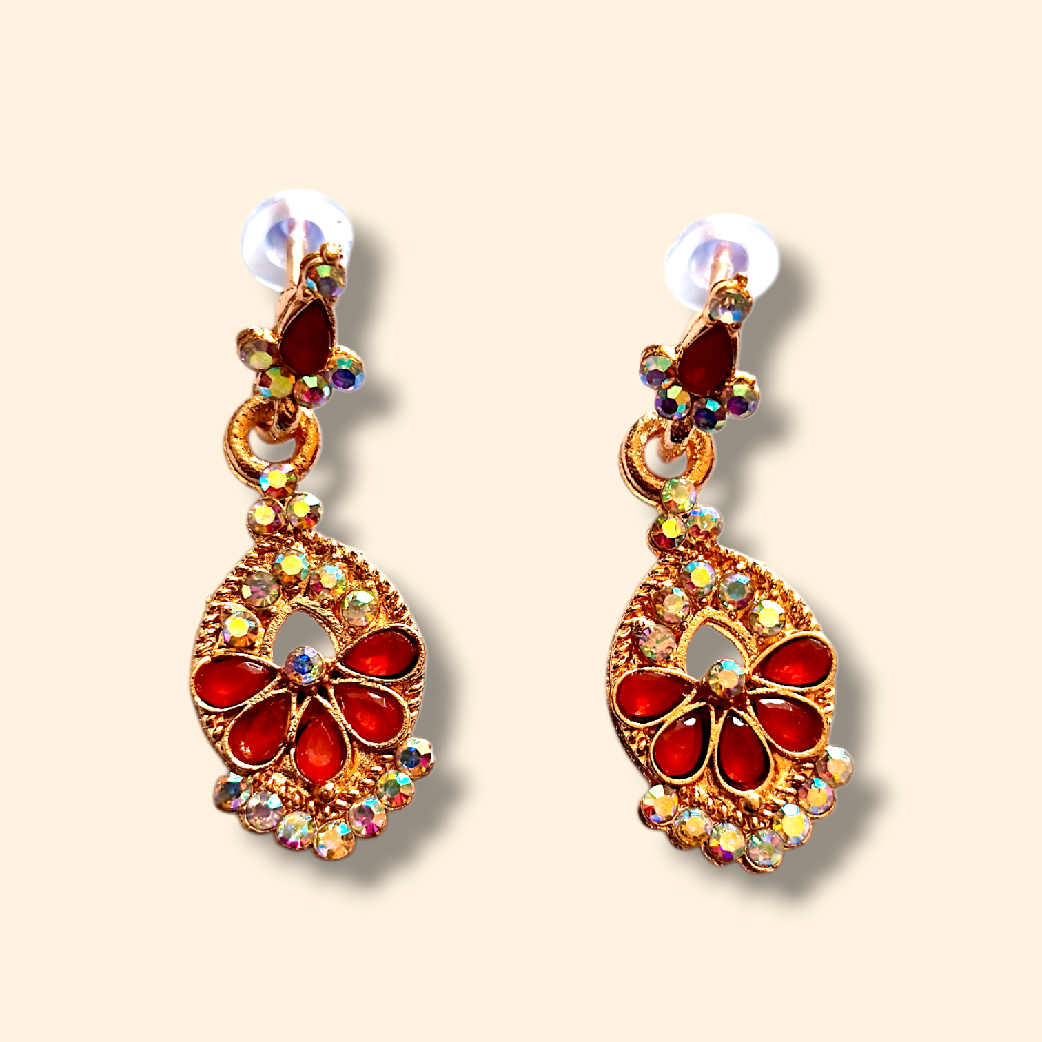 Elegant Red Stone Floral Drop Earrings – Rich & Stylish Look ❤️✨