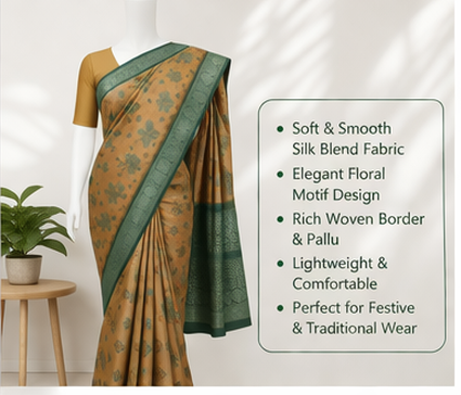 Crafted from premium quality silk fabric, it is lightweight, smooth, and comfortable for long hours. Perfect for festive occasions, weddings, parties, and cultural events, this saree adds grace and sophistication to your appearance.