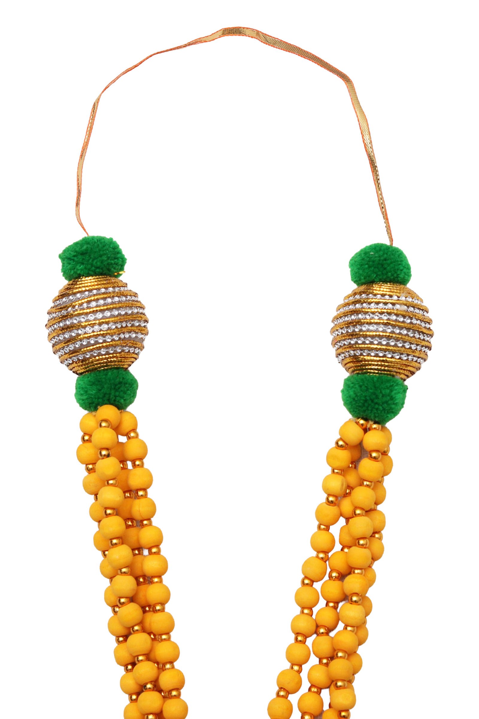 Designed with four layered bead strands, the mala provides a rich and full appearance when placed around photo frames of gods, saints, ancestors, or decorative idols. The decorative stone balls and chandan-style beads add charm and cultural elegance, making it suitable for religious ceremonies, pooja rituals, temple decoration, and festive occasions.
