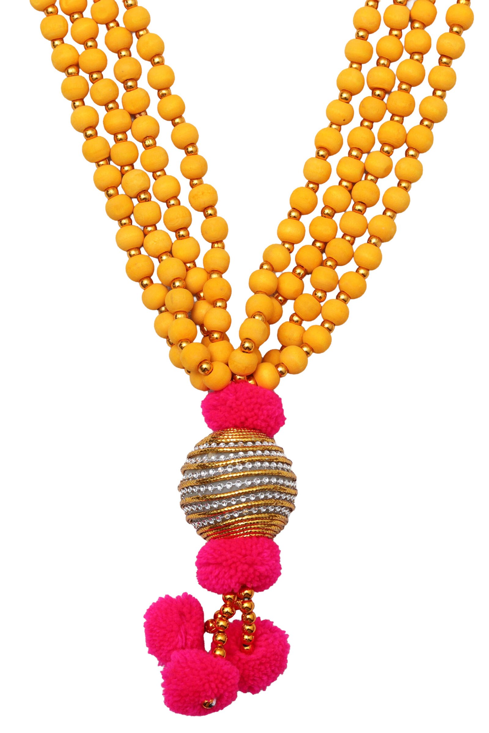 - HANDCRAFTED QUALITY: Meticulously handmade temple garland with premium wooden beads arranged in a distinctive four-line pattern for spiritual significance