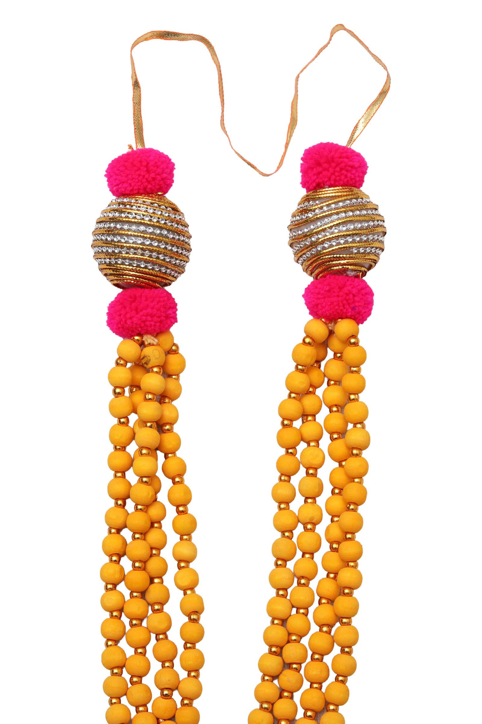 Sandhana Maalai – 5 Line Chandan Tikka Garland | Handmade Scented Traditional Floral Malai with Tassels & Pendant for VIP Welcome & Pooja
