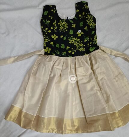 Girls Black Floral Bodice Cream Flared Dress | Kids Princess Party Wear Frock