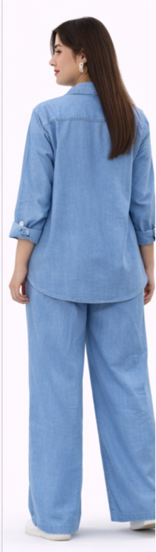 Step out in style with this trendy women’s denim co-ord set designed for comfort and elegance. Featuring a stylish floral applique shirt paired with wide-leg denim pants, this outfit offers a modern and relaxed look. Ideal for casual outings, travel, shopping, or daily wear, the breathable denim fabric ensures all-day comfort while keeping you fashionable.