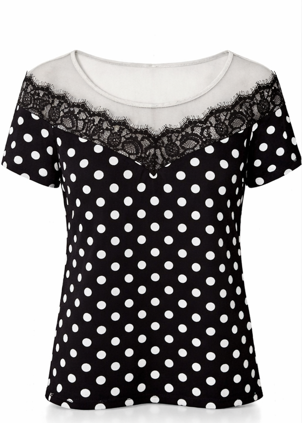 Women’s Black Polka Dot Top with Lace Neck | Stylish Casual Western Top for Women