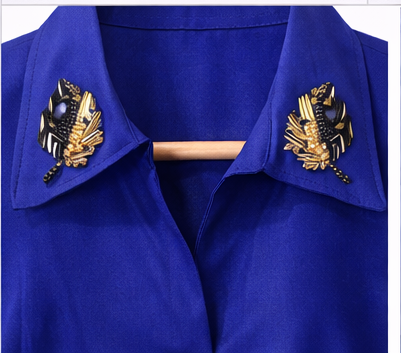 Make a confident and stylish statement with this royal blue pencil dress for women, designed for the modern professional. Featuring a sophisticated tie-neck detail and elegant bell sleeves, this dress adds a contemporary touch to a classic silhouette.