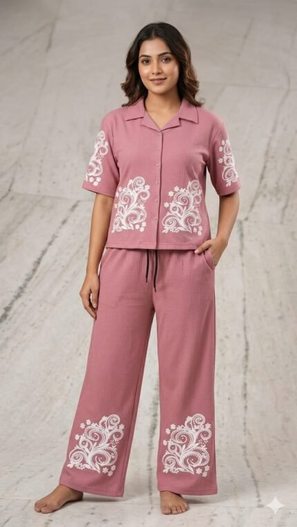 Upgrade your wardrobe with this elegant women’s royal blue shirt and palazzo co-ord set, designed for modern women who love comfort and style. This outfit features a stylish collared shirt paired with matching wide-leg palazzo pants, offering a relaxed yet sophisticated look.