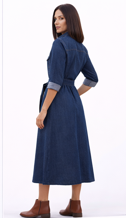 Women’s Denim Shirt Dress with Belt | Casual Midi Western Wear