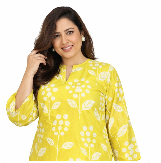 Upgrade your ethnic wardrobe with this beautiful yellow floral printed kurta set. Crafted with a soft and breathable fabric, this outfit offers both comfort and elegance. The kurta features a minimal floral design with a straight fit, paired with matching pants for a complete traditional yet modern look.